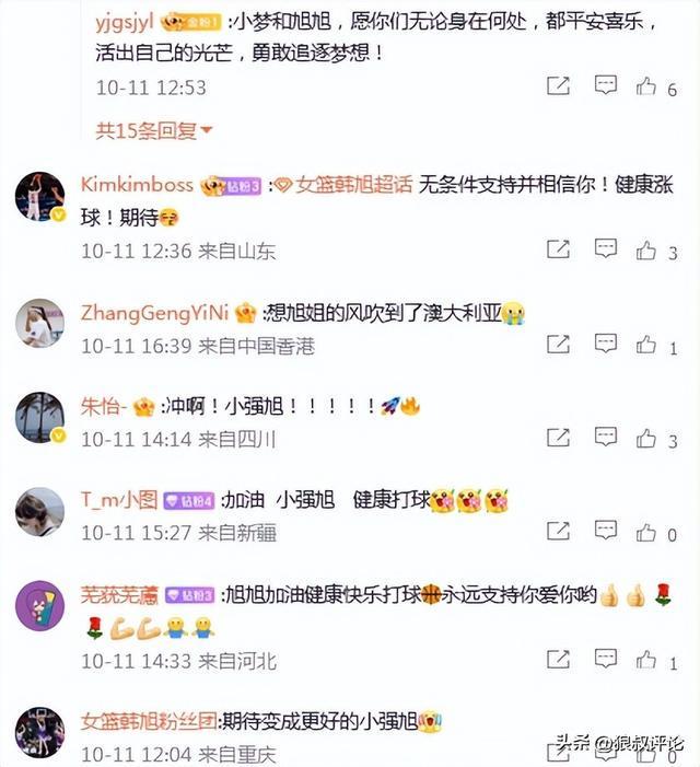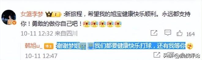 韩旭则是回应:谢谢梦姐我们都要健康快乐打球,还有我等你。